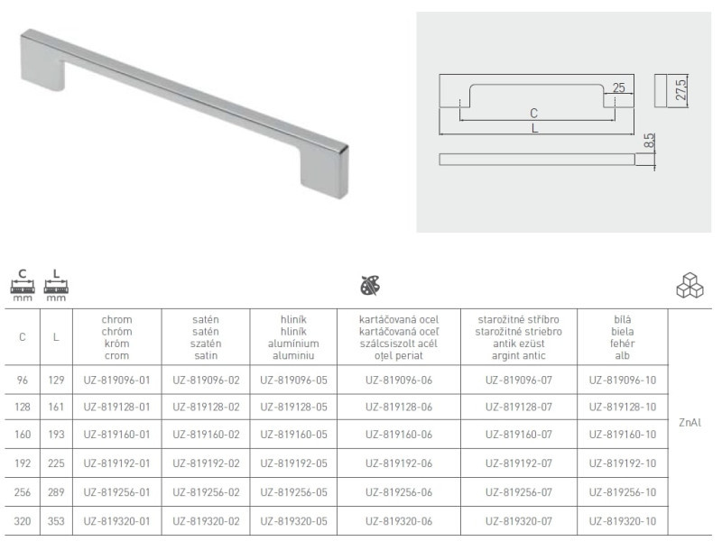 UZ – 819 – finom és egyszerű fogantyú Az UZ-819 minden típusú bútorhoz megoldás.